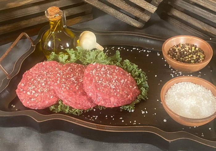 Elevate your burger game with our 100% All-Natural Grass-Fed Pasture-Raised Wagyu Burger Patties. Crafted from the finest Wagyu beef sourced from our idyllic pastures, these patties offer a gourmet dining experience like no other. Each bite bursts with rich, buttery flavor and unmatched juiciness, thanks to the exceptional marbling characteristic of Wagyu beef. Perfectly portioned at 1/3lb each, our Wagyu burger patties are ideal for grilling, pan-searing, or broiling to perfection. Treat yourself to the ultimate burger indulgence with our premium Wagyu offering, available exclusively at RealWagyuBeef.com.