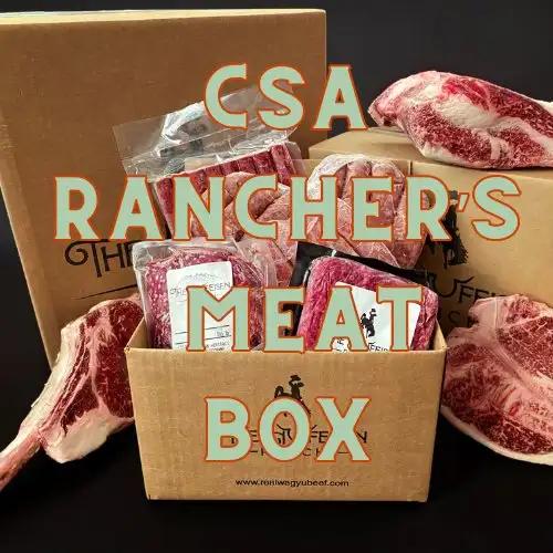 Our CSA Ranchers box is 10lbs Grass-fed Wagyu and Pork all raised on organic pastures. This selection will include a variety of ground meat, sausages, offal, bones, roasts and steaks from our regenerative grass-fed ranch. If you are looking to sample one of our boxes, you have the option to choose a one-time purchase.