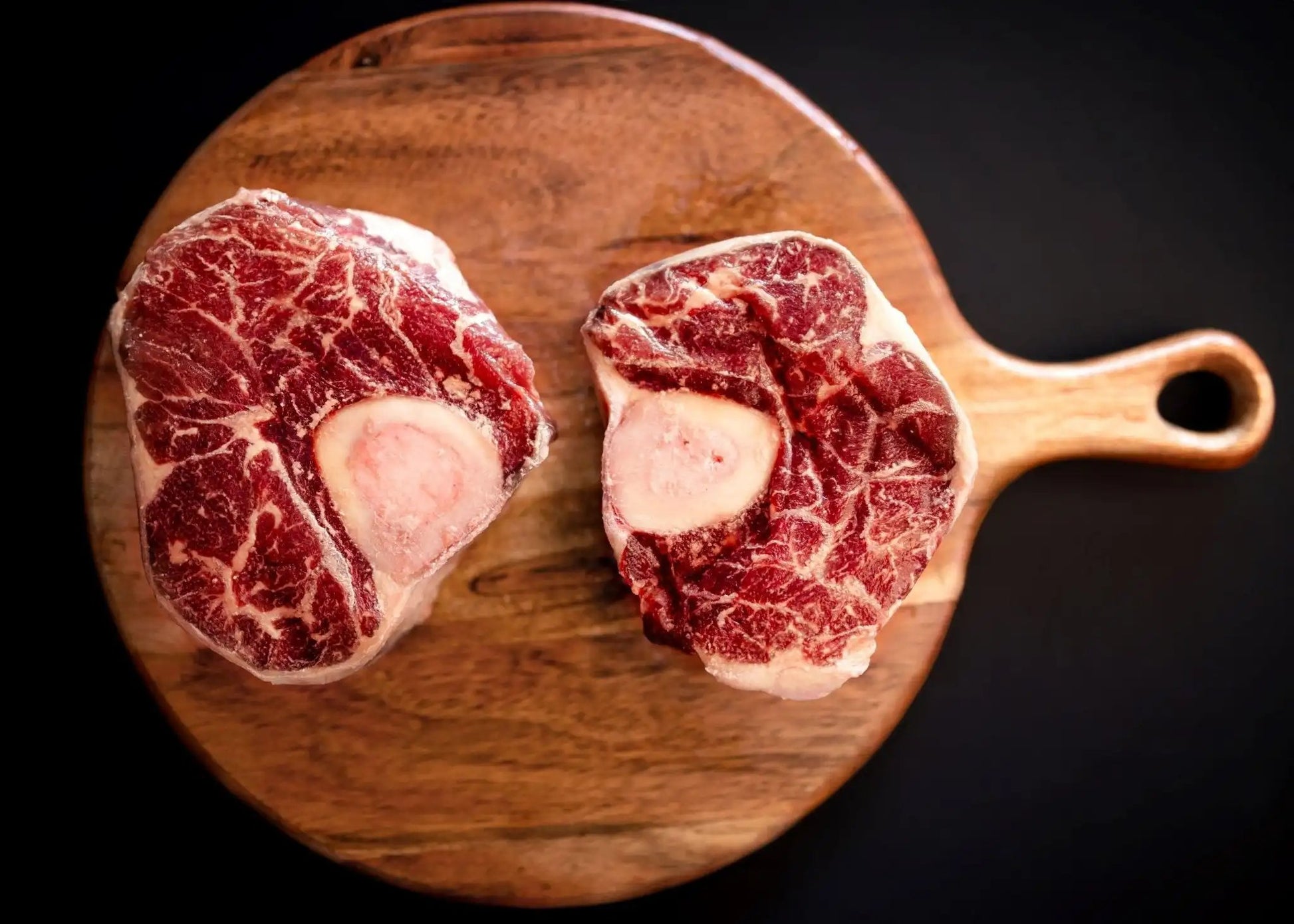 Our Wagyu Osso Bucco is cut from the shank, featuring a generous portion of tender, marbled meat surrounding a marrow-rich bone — perfect for slow-braising into a melt-in-your-mouth classic. The marrow infuses your dish with unmatched richness, making every bite a decadent comfort.